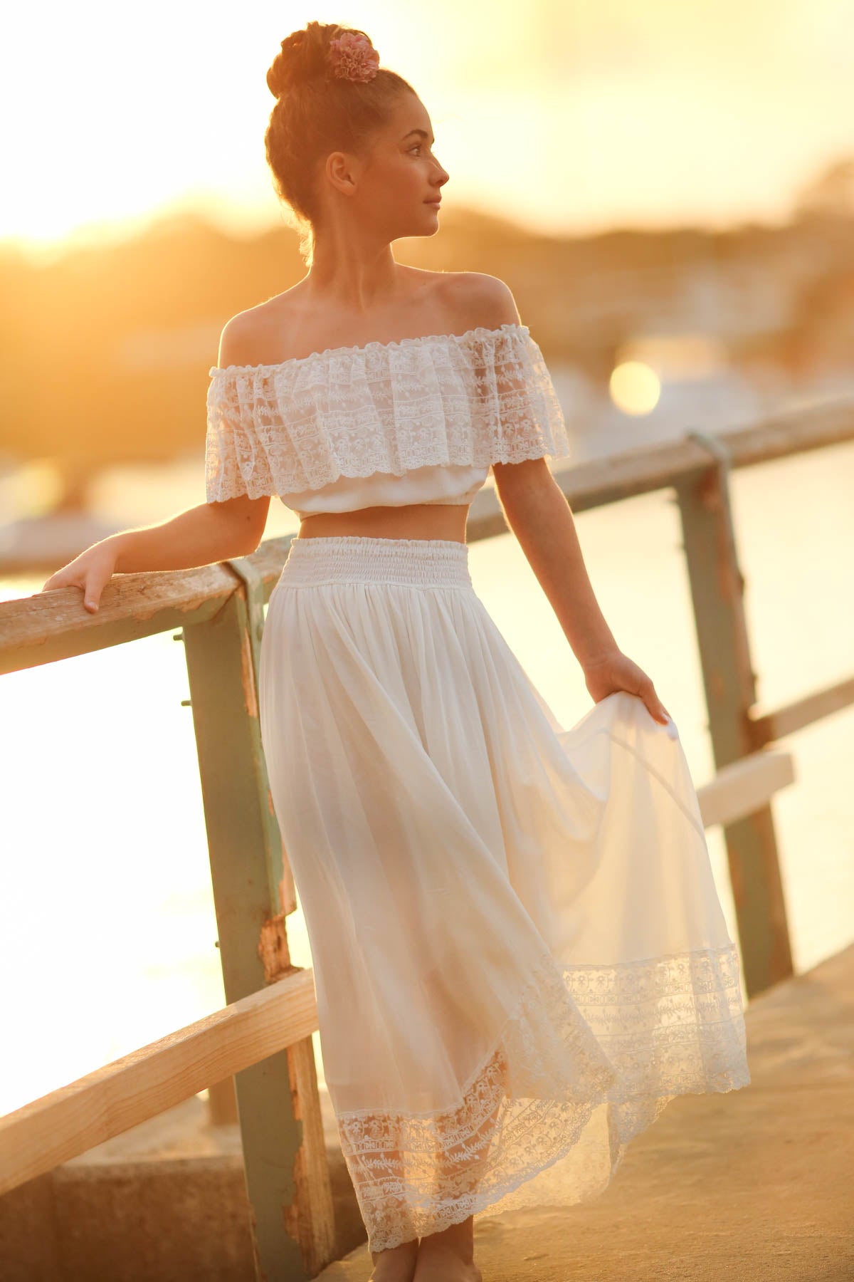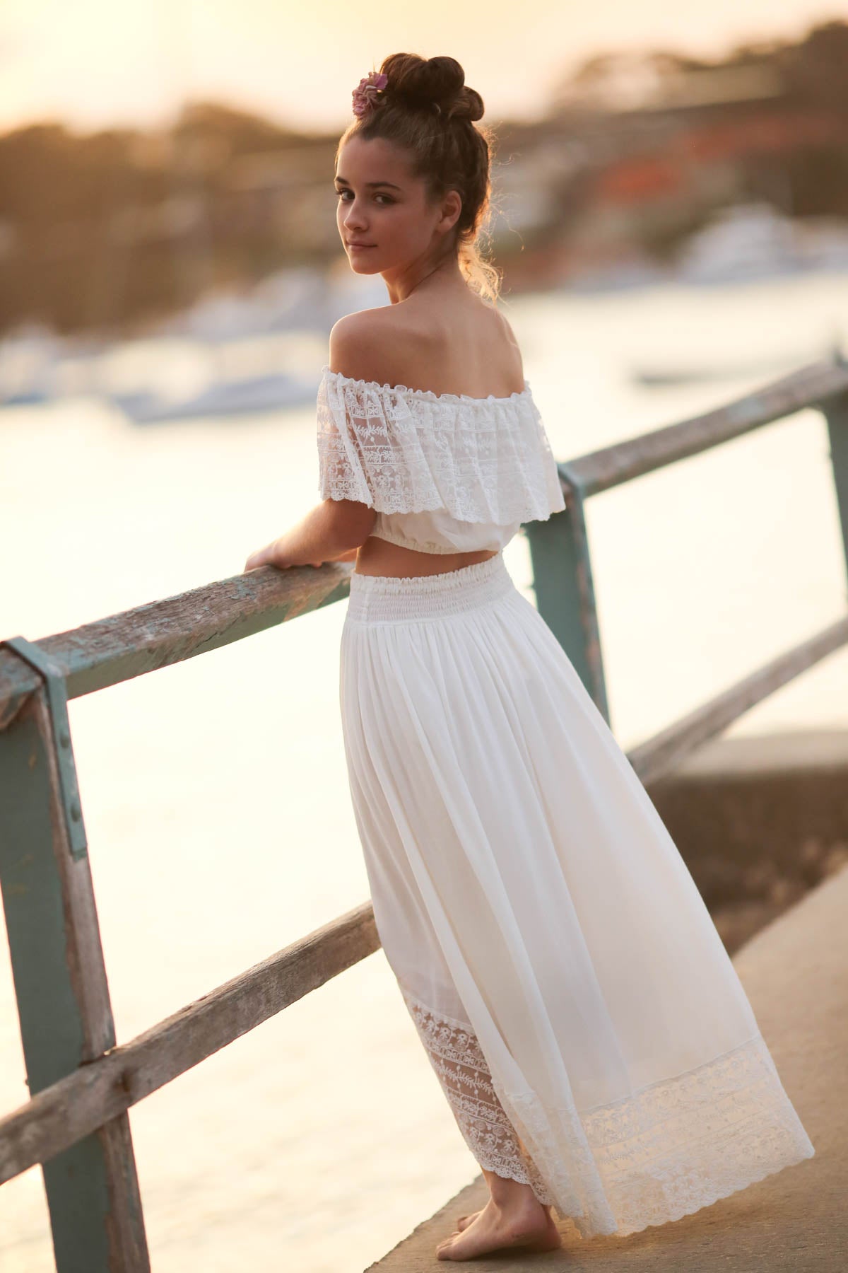Our Eve Set — a stunning ivory two-piece top and skirt.