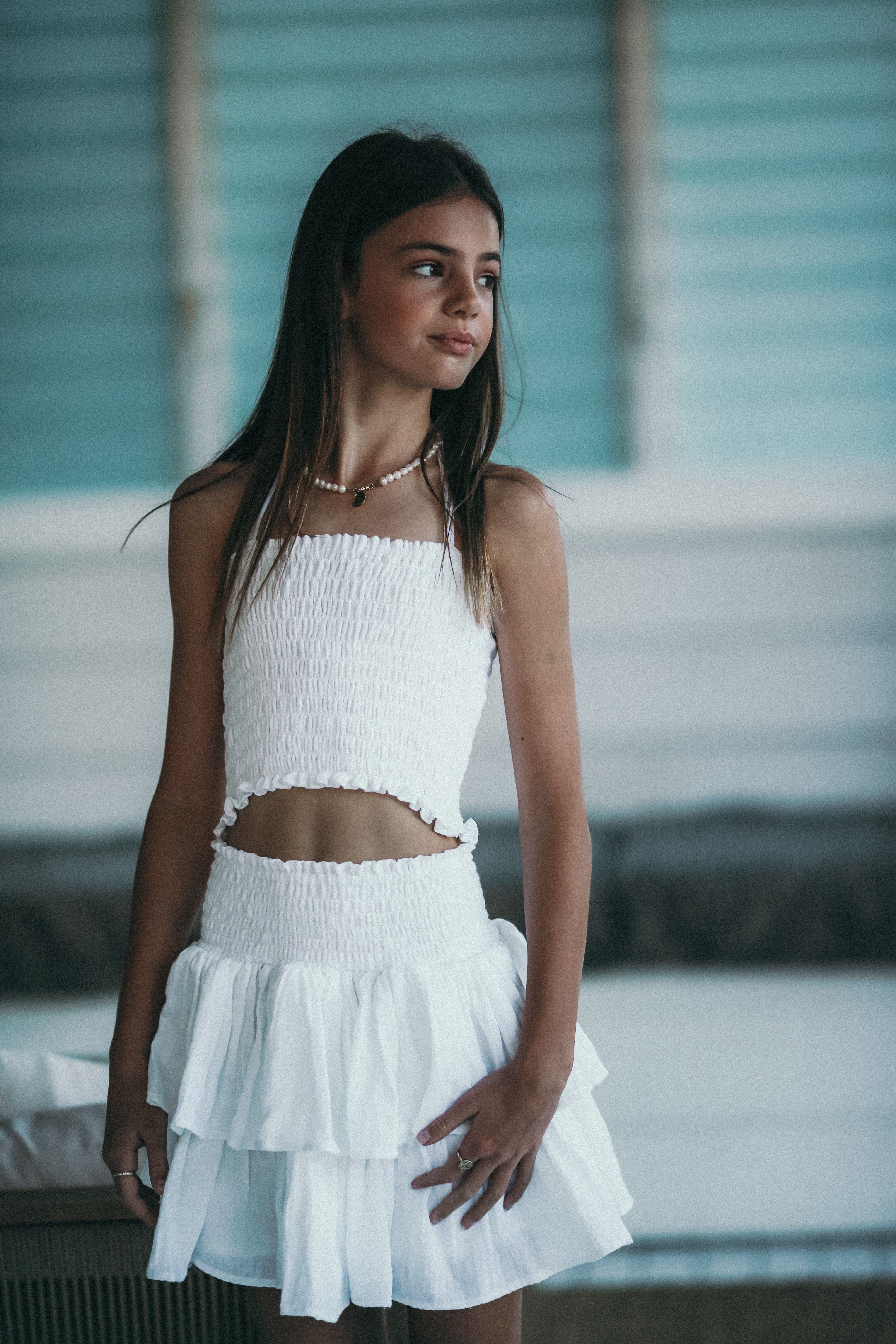 Our white Jewel Skirt and top set (two piece design)